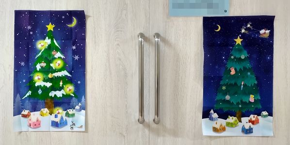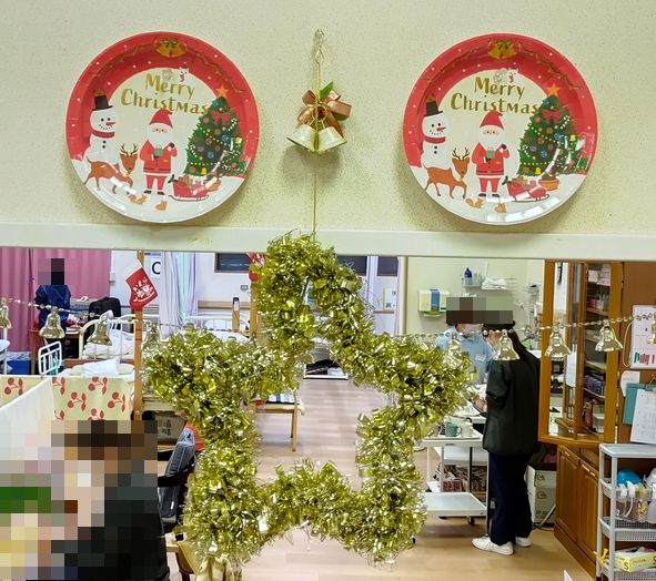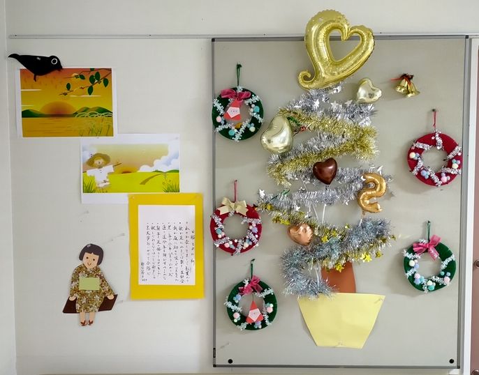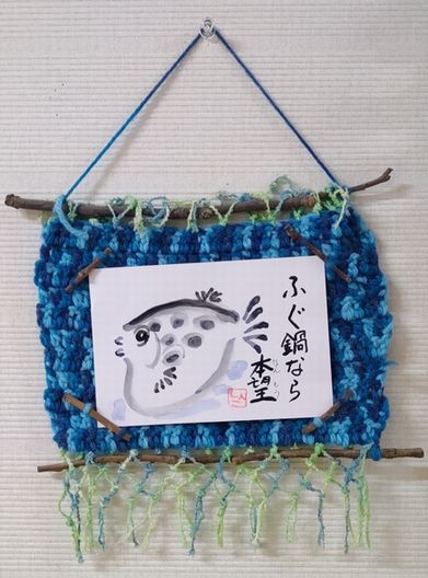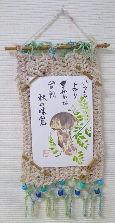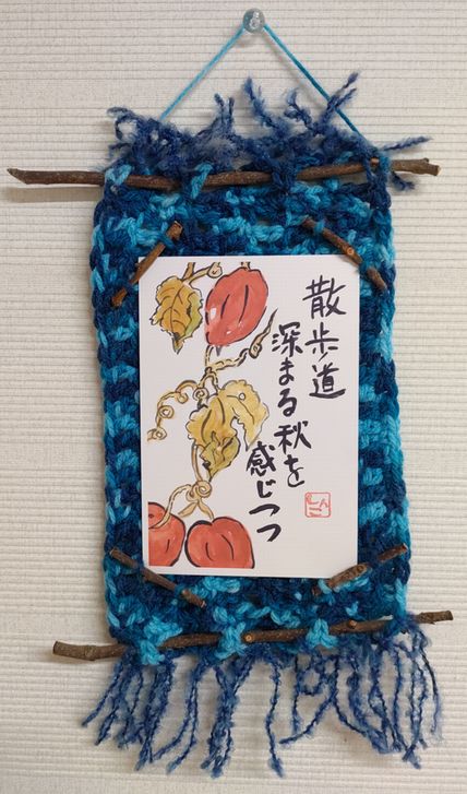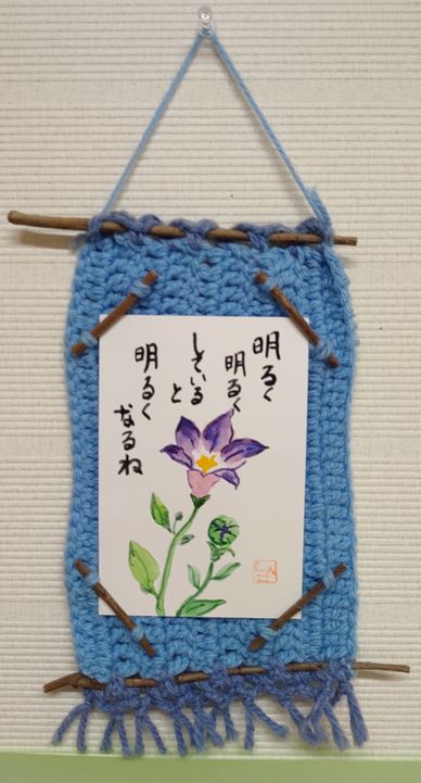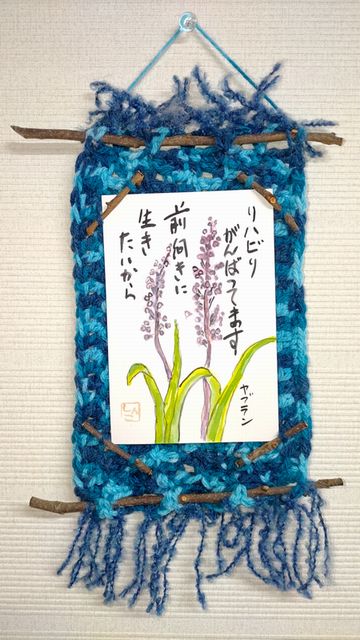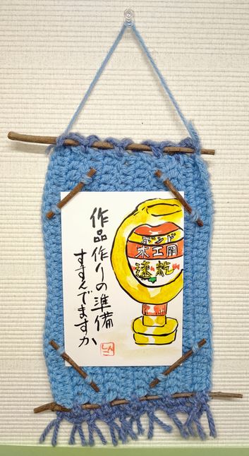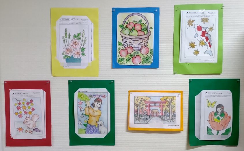 利用者さんの作品が、リハビリ物理療法室の前ローカから飾ってあります。