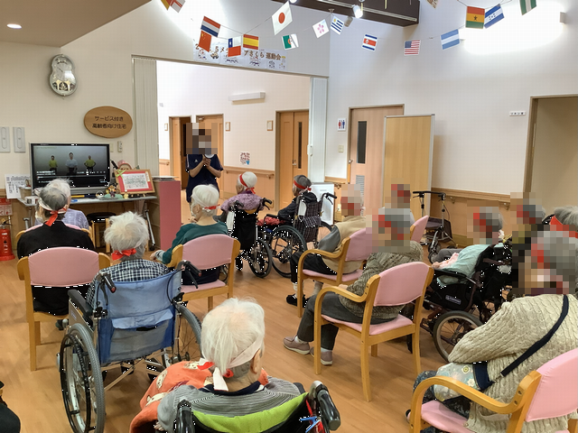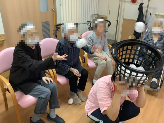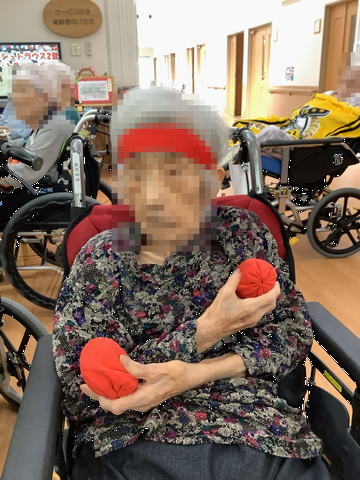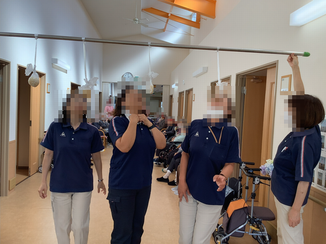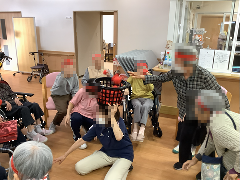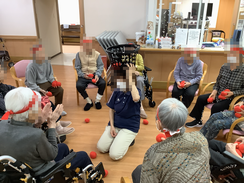 サ高住のローカで行われた”パン食い競争です。 利用者さんも職員も頑張りました! (^o^)/”